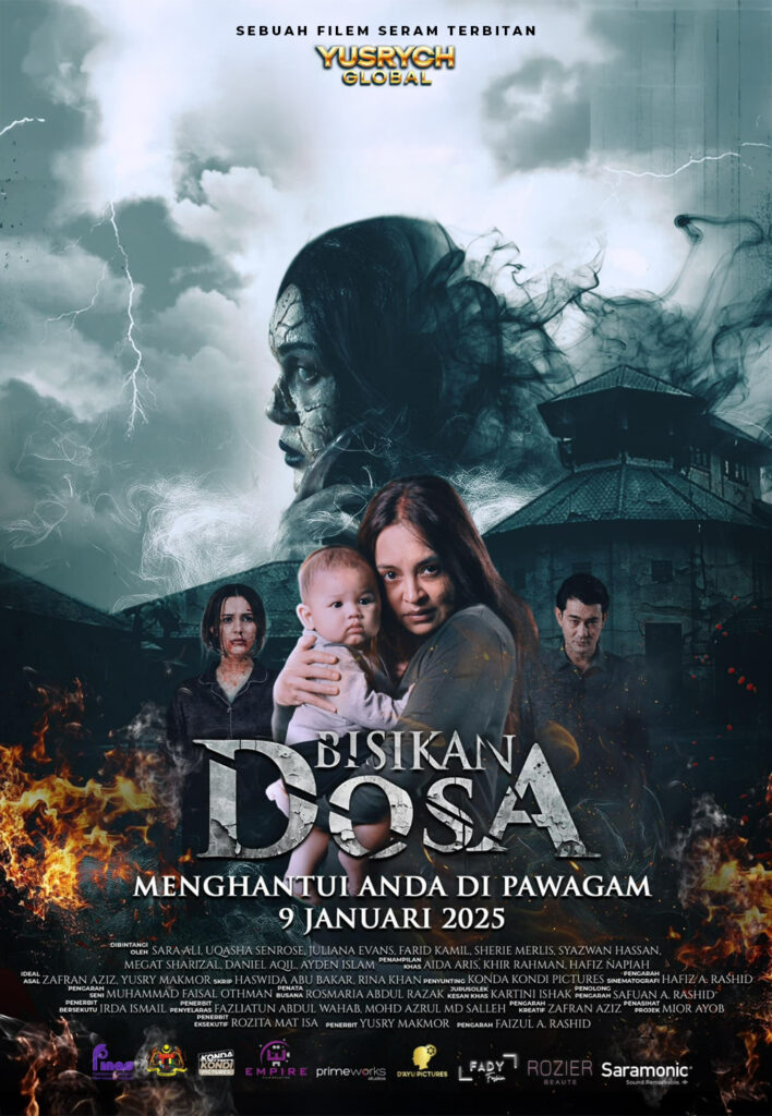 Sebuah Filem YUSRYCH GLOBAL “BISIKAN DOSA” Dibintangi oleh SARA ALI, UQASHA SENROSE, JULIANA EVANS, FARID KAMIL, SHERIE MERLIS, SYAZWAN HASSAN, MEGAT SHARIZAL, DANIEL AQIL, AYDEN ISLAM, Penampilan Khas AIDA ARIS, KHIR RAHMAN, HAFIZ NAPIAH, Ideal Asal ZAFRAN AZIZ , YUSRY MAKMOR, Skrip HASWIDA ABU BAKAR, RINA KHAN, Penyunting KONDA KONDI PICTURES, Pengarah Sinematographi HAFIZ A RASHID, Pengarah Seni MUHAMMAD FAISAL OTHMAN, Penata Busana ROSMARIA ABDUL RAZAK, Jurusolek Kesan Khas KARTINI ISHAK, Penolong Pengarah SAFUAN A.RASHID, Penerbit Bsersekutu IRDA ISMAIL, Penerbit Penyelaras FAZLIATUN ABDUL WAHAB, MOHD AZRUL MD SALEH, Pengarah Kreatif ZAFRAN AZIZ, Penasihat Projek MIOR AYOB, Penerbit Eksekutif ROZITA MAT ISA, Penerbit YUSRY MAKMOR, Pengarah FAIZUL A RASHID.